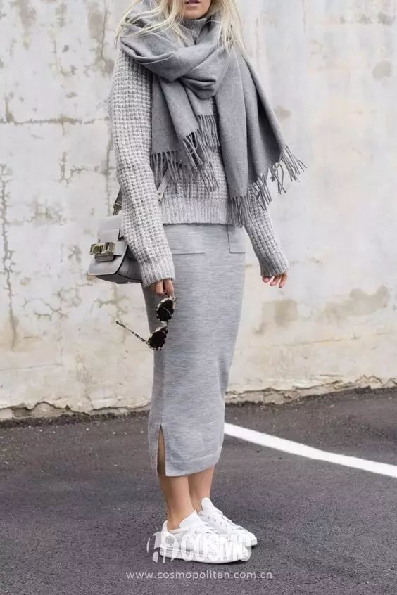 灰色可以说是最雅致也是最大气的颜色之一,深灰和浅灰几乎都成为秋冬的衣橱必备色,这种灰色就是自带质感的颜色,而且灰色有多百搭,可能也不需要我多说了吧。