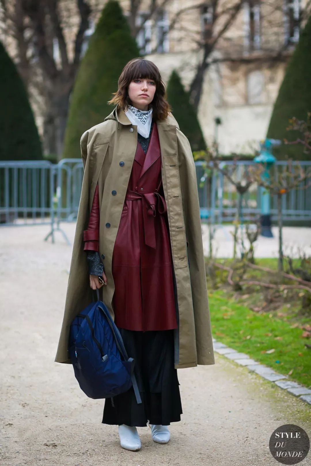 一件质感上佳的酒红色风衣可以很好的抵御严寒,又能为气质加分,酒红色皮革的材质低调又大气,看上去质感上乘,叠加一件斗篷式风衣更能增加层次感▼