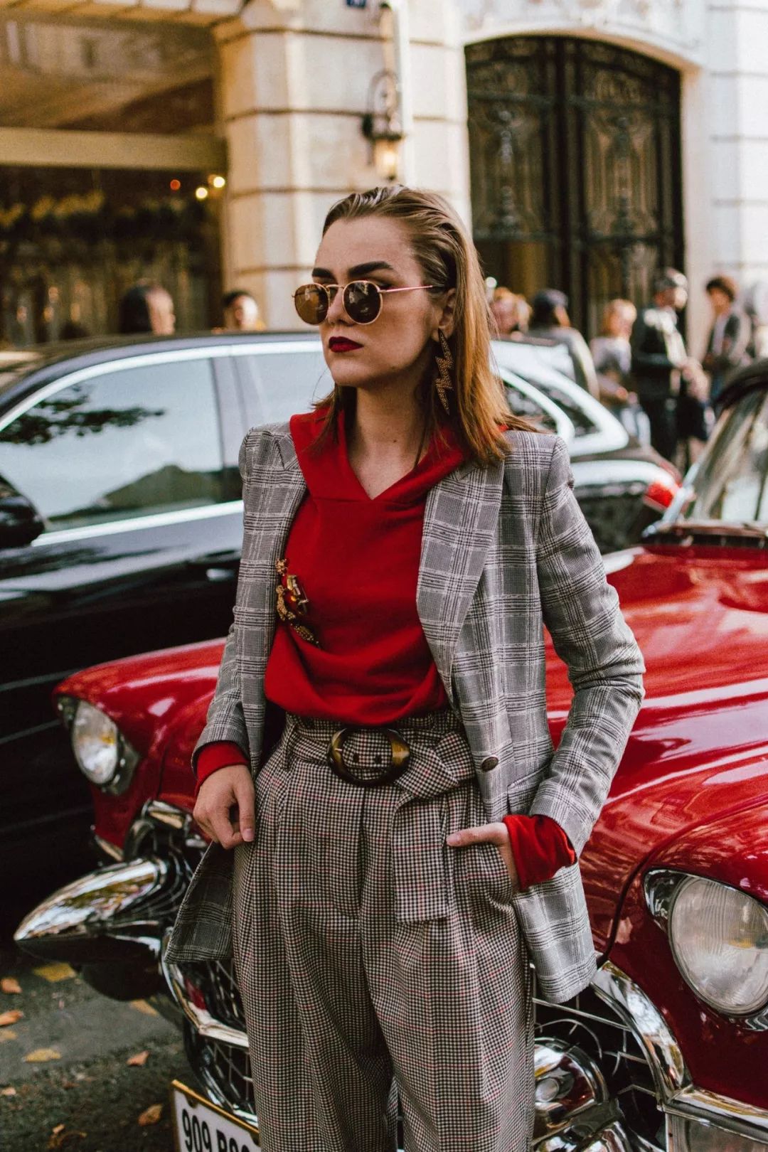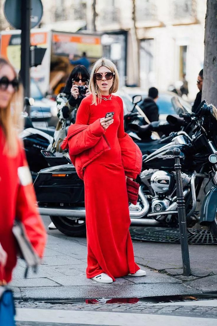 更高级的时髦精不妨试一下大面积的酒红着装,也会有意想不到的效果。一件酒红色外搭就能调亮整个造型,也不会过于高调▼