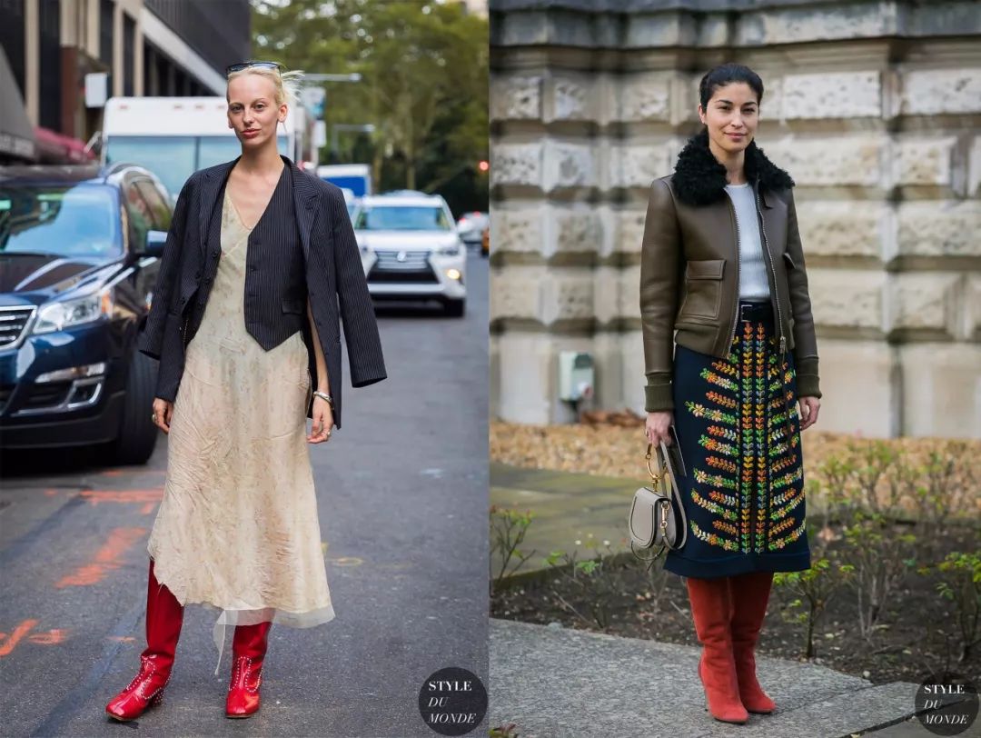 这个秋冬必须拥有一双酒红色长靴来成为你的战靴,大胆的酒红色高调又高级,即使是再单调的造型都能被增色不少▼