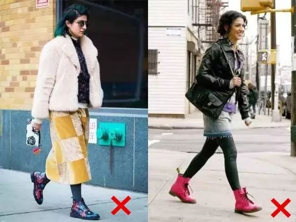 大花色和糖果色不好搭,还自带一种淘宝爆款的廉价感。所以,姑凉们,还是老老实实的穿纯色马丁靴吧~