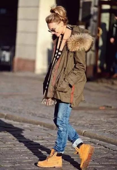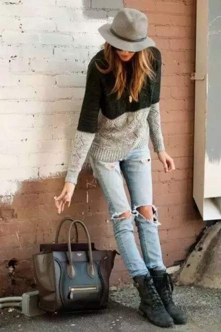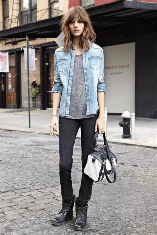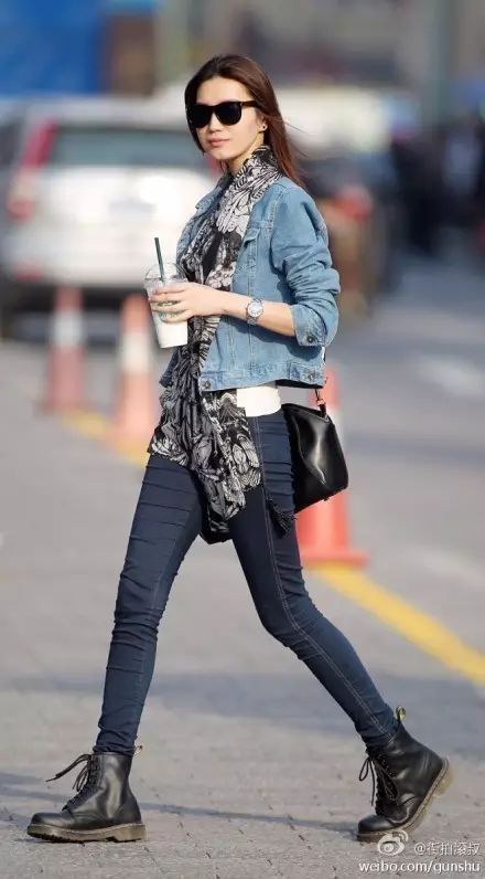 紧身牛仔裤(经典的or破洞的) 马丁靴,是经典cp,酷酷的,还带着一丝不羁。挽起裤脚,还能起到显高效果哦。