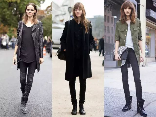 搭配靴子,肯定不能选择过于宽松的裤子。那些经典的紧身裤、裤袜、打底裤等,都是马丁靴的标配。