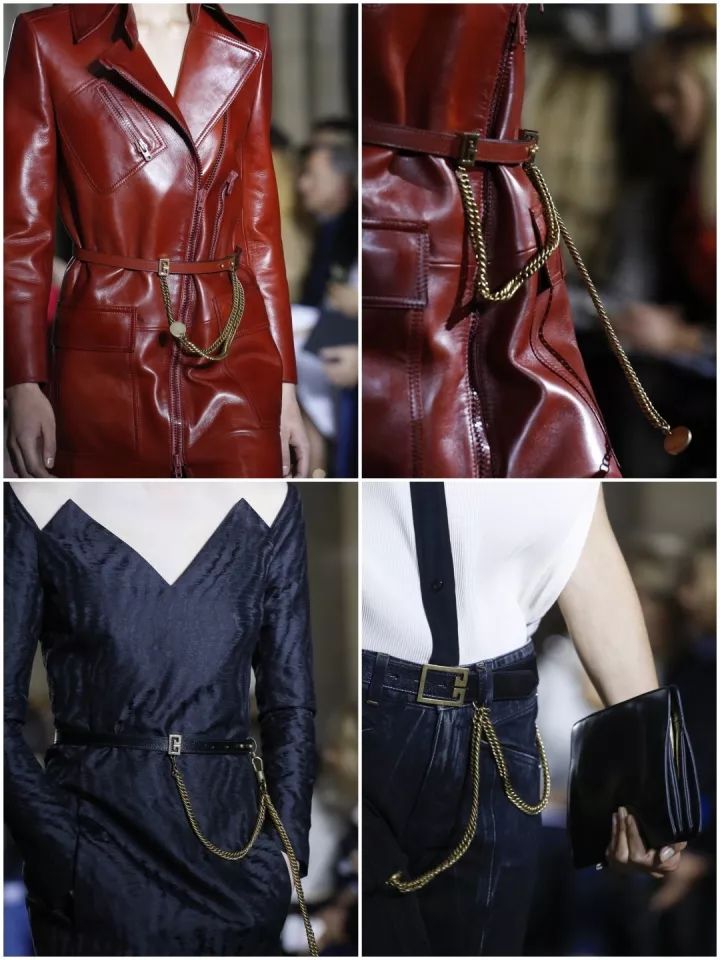 细密的金属长链不仅是包袋的一部分,还是用来配搭皮质卫衣与T恤的腰链,延续传统与点缀传统的双重理念让这一季的配饰变得经典却又有趣。