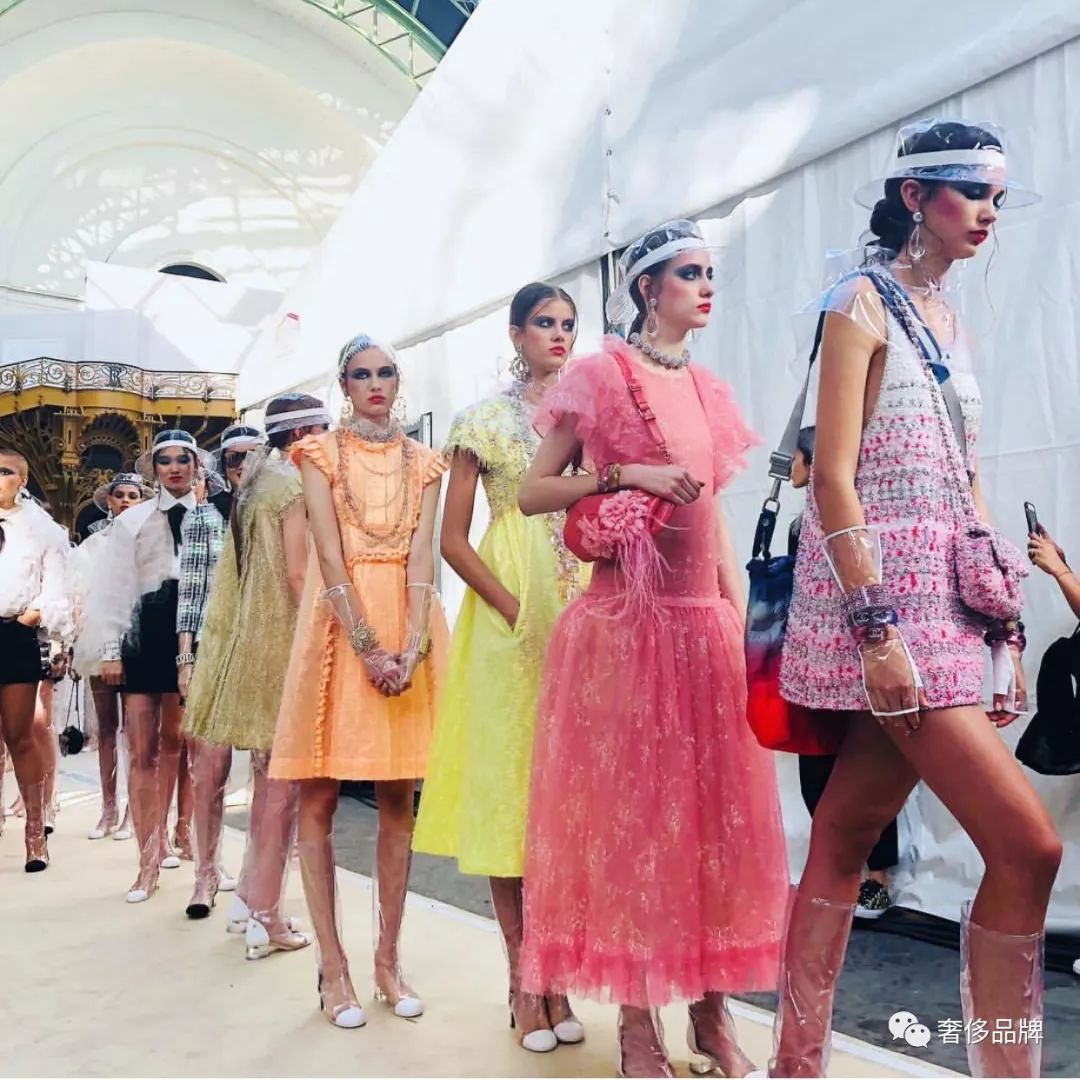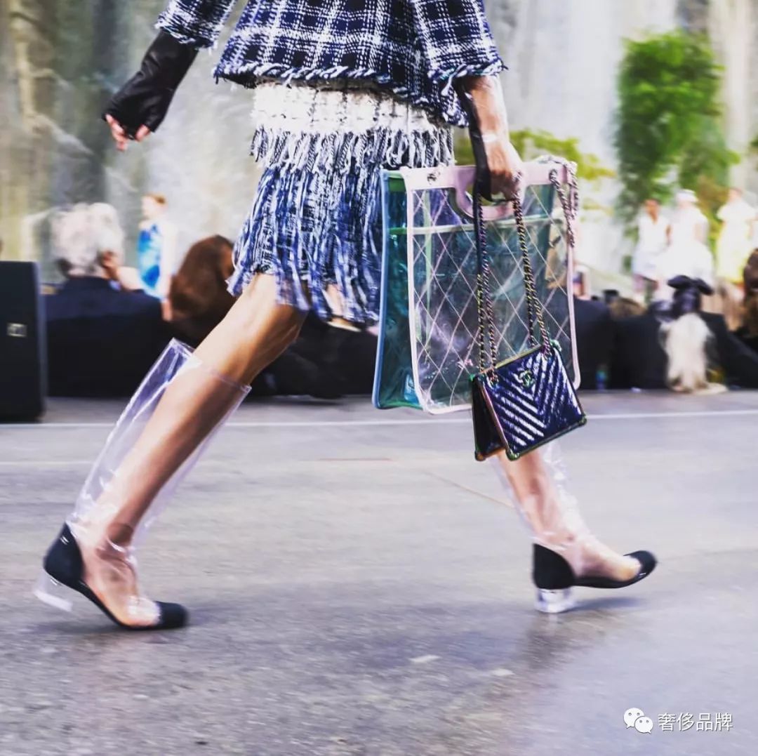 Chanel这次不仅有pvc材质的鞋子,整个2018春夏秀场随处都可以看到pvc材质的单品。