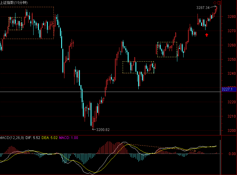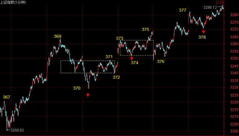 小级别上,参考60分图及以下图形。60分图上,参考5分走势的同级别分解操作,当下正是3200反弹以来的1分走势,近似于60分图上的1笔。今天的高开后回调走出了1分3买点。图中的两个1分中枢,当下还是看作一个1分中枢来分析。