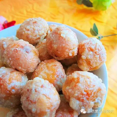 2.热锅加油至三成热,将丸子逐个放入锅中,小火煎炸,待丸子浮上油面,变成淡黄色时捞出。
