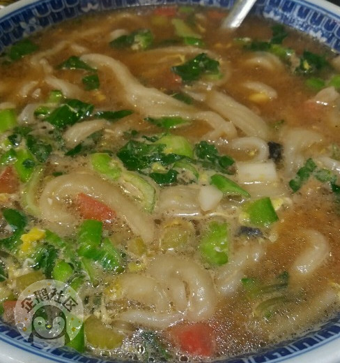 排骨老鸹撒特色小吃,一盆份量一般,里面有鸡蛋,西红柿,青菜,木耳,都服,还有几块排骨,类似面鱼的样子,吃到嘴里蛮劲道,汤比较香,排骨还挺好吃的。