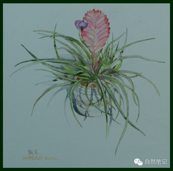 这是我第一次画水彩花卉,这张水彩临摹了一个月。也因为一边看书学习使我对水彩有了一个基本认识。然后我很开心啊,开始想创作了,自己到玉泉营花卉市场逛了一圈买了一盆铁兰,画了这幅铁兰。(对不起铁兰花本君已经死了,现在只能看到画像。)
