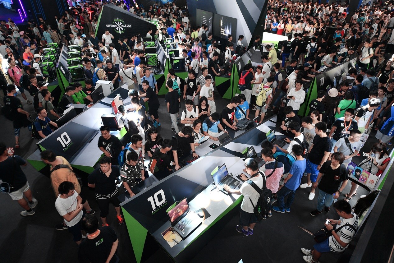 在NVIDIA展台,搭载最新GeForce GTX 移动显卡的游戏本也展现了强大的性能。使用NVIDIA DSR功能,让网络游戏在极限画质的基础上,以2K甚至4K更高的分辨率运行,表现出更好的游戏画面。