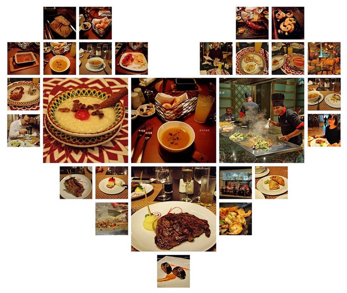 酒店有三个自助餐厅,三个沙滩自助餐厅,6、7个沙滩吧和6个泳池吧,还有8个A la carte餐厅,分别是墨西哥、阿根廷、日餐、中餐、印度、西班牙、意大利和美国牛排风味餐厅。