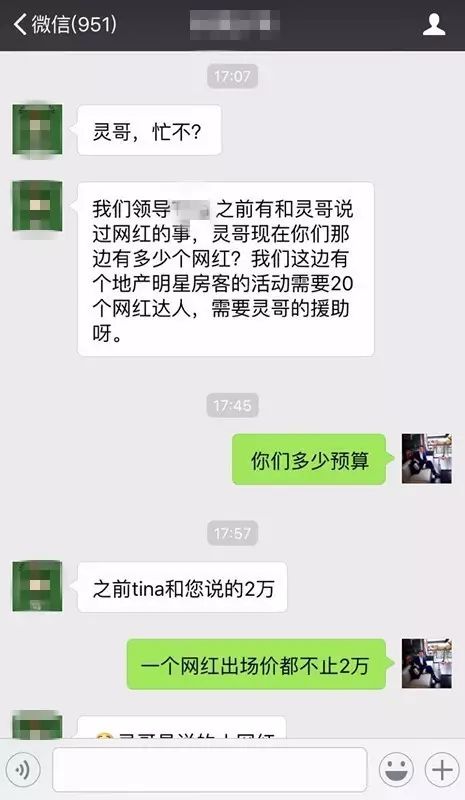 当当当当,傍晚的时候灵哥收到一个公关公司朋友对网红发来的一个询价,大家看图