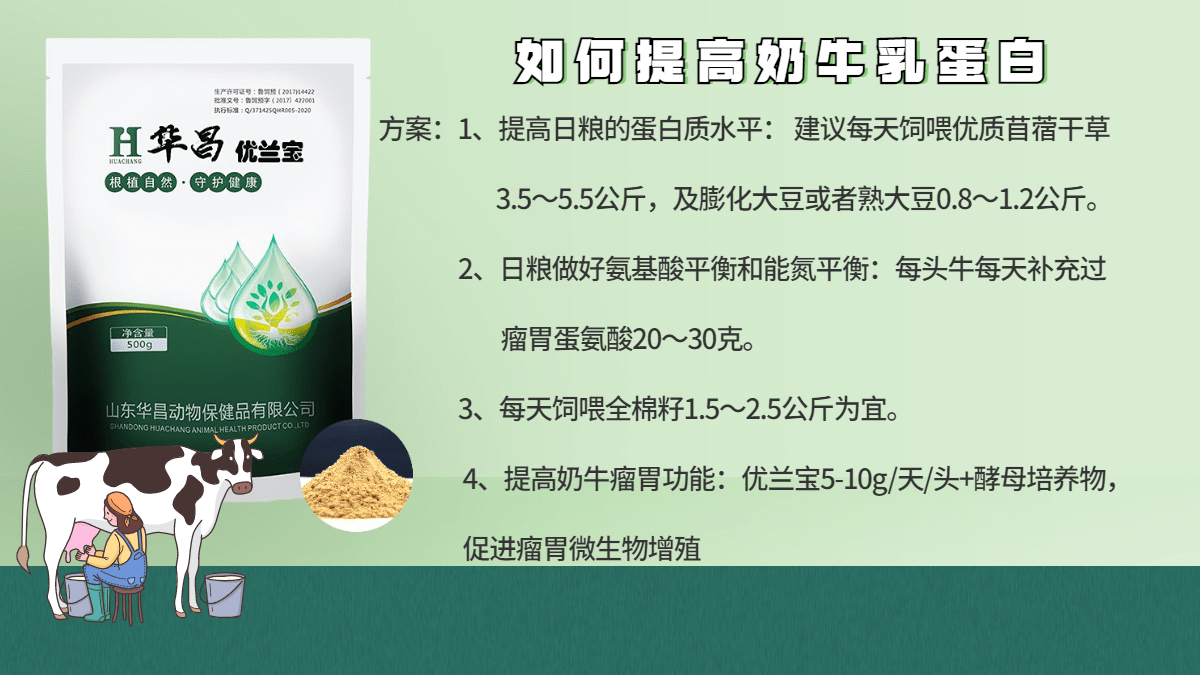 除此之外,在奶牛生产中,也可以通过品种改良和营养调控提高奶牛乳蛋白,但是品种改良时间较长,因此,调节奶牛饲养营养是更为有效提高奶牛乳蛋白水平的方式。