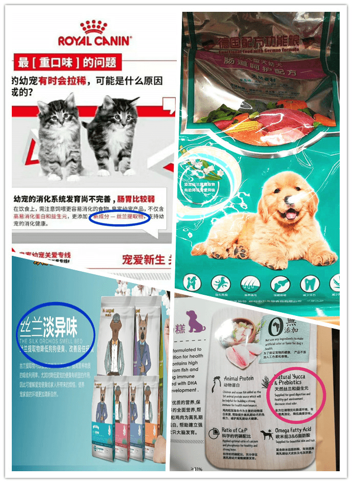 而在调查高端宠粮时发现,很多高端宠粮都有添加丝兰提取物,粘性也很高。对于宠物食品来说,丝兰提取物源于天然麟凤兰植物提取物,是一种绿色、健康的功能性添加剂,具有以下功效: