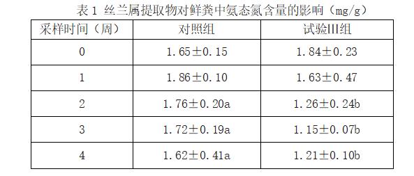 这一结果表明,本试验条件下,丝兰提取物可以减少贵宾犬粪便臭味以及鲜粪中氨态氮的含量。