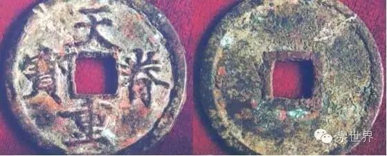 河南省曾于2000年前后发现一枚折三天眷重宝,后被新加坡古钱大藏家陈光扬重金购入箧中。