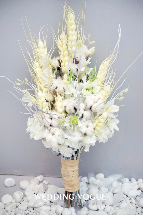用纯白色的花朵打造的新娘捧花,象征着恋人间清雅纯洁的爱情。表达着新人那份纯粹、自然的情感格调。