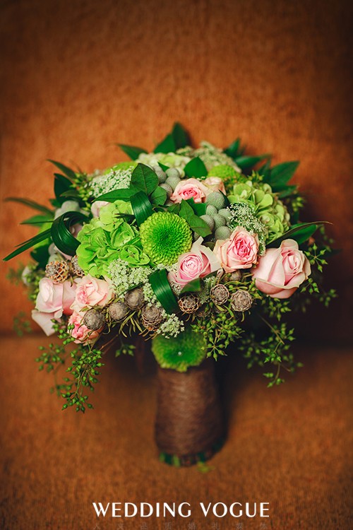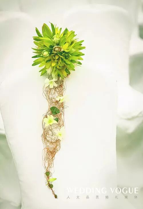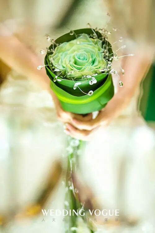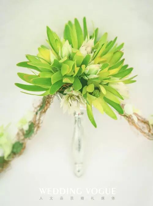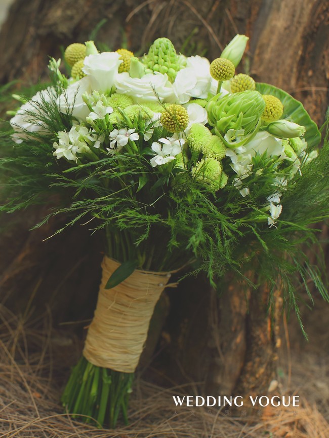 绿色的捧花为新娘的动人婚纱点缀了干净的一抹亮色,这种自然气息感的捧花让人倍感阵阵舒心清爽
