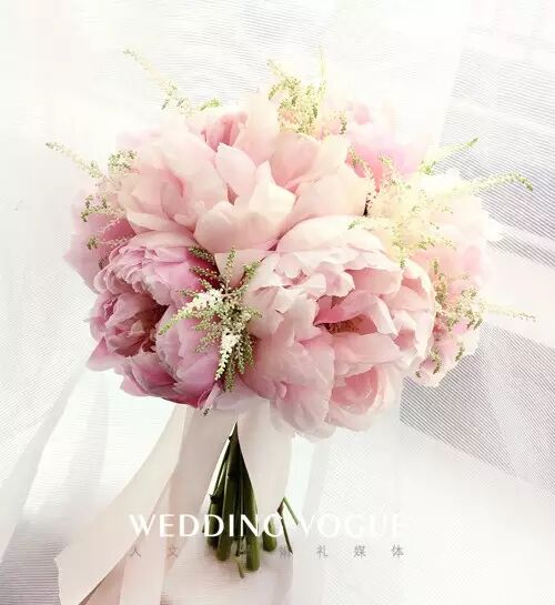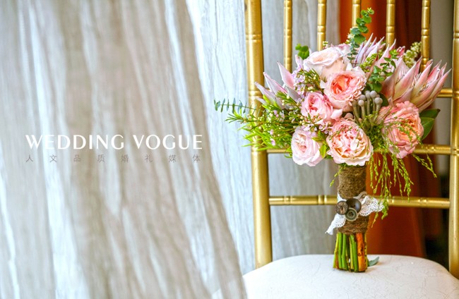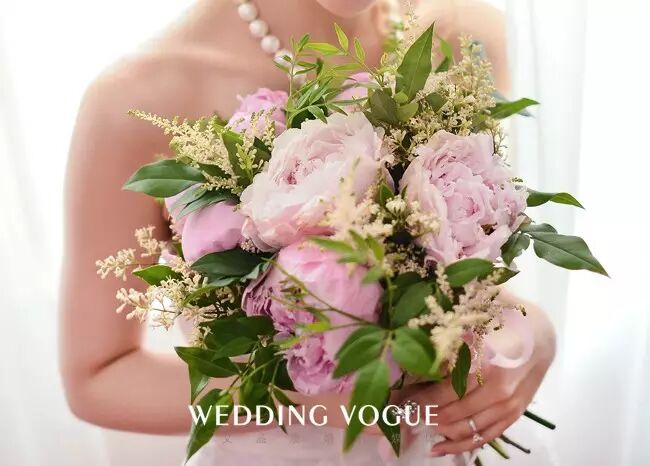 在有着公主梦的新娘当中,粉色是最能引起幻想的色彩,粉色捧花可以千般姿态,不同的造型散发不同的韵味。