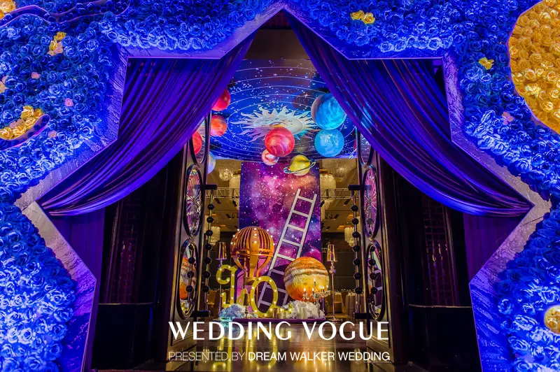 灵感来源于梵高《星空》的一场主题婚礼,令人仿佛漫步于梦幻的星际之中。NASA曾提到过一颗幸福的星球:Where your shadow always has company,其实有相爱的人陪伴哪里都会环绕着幸福。