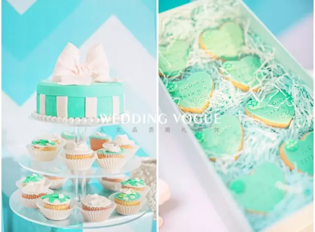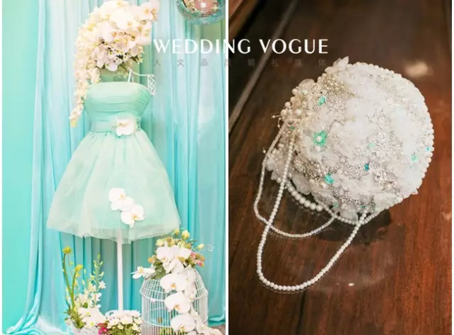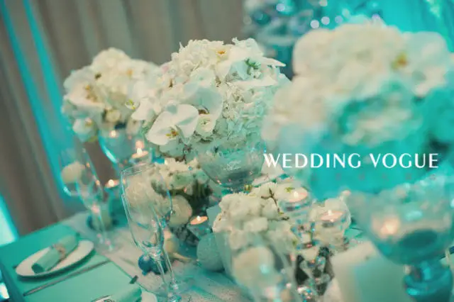 Tiffany蓝,给人以清凉惬意的色系。将某一色系成功地运用于婚礼,统一的色彩中呈现出不同的视觉层次感。