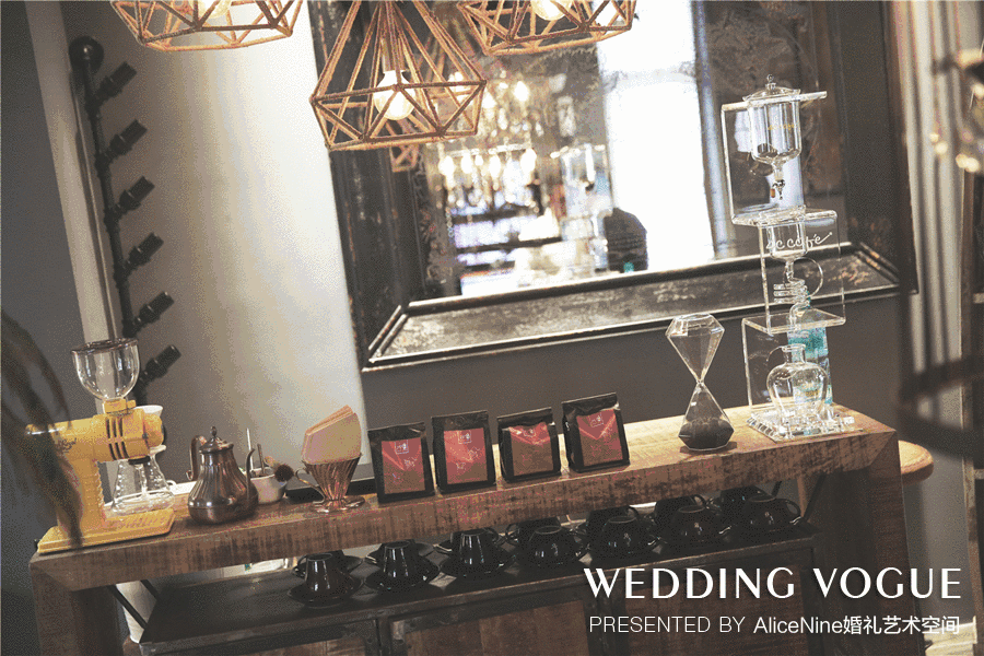 由于很多试婚纱的新人喜欢上了 AliceNine复古感觉的装修风格和各种有意思的收藏品,所以要求 AliceNine来做自己的婚礼设计,于是,便有了今天的 AliceNine婚礼艺术空间。