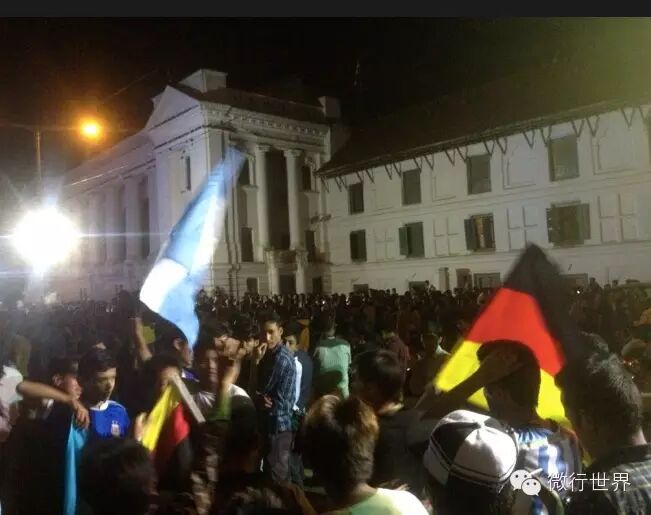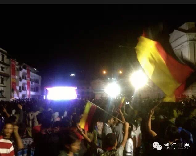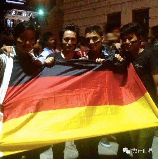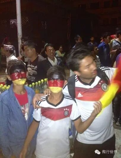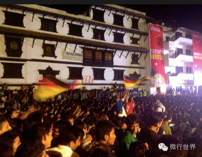 当地时间下午五点过,一个尼泊尔朋友告诉我们在他们的杜巴广场晚上会有大屏幕直播比赛,我一听便兴奋了,这可是一个在尼泊尔地位类似与中国天安门广场的地方。于是立马动身前往,一路上让我惊奇的是,无论是大人还是小孩,他们很多都穿着阿根廷和德国的球衣,而且还有人时不时冲我喊着“Germany”,突然明白原来我穿着德国8号厄齐尔的变型球衣,一下子我就被他们的友善与开放直接感染。