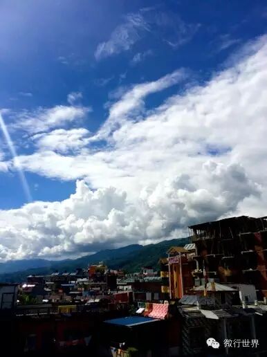 八个小时的车程抵达博卡拉,一下车抬头便看到一大片厚重的云,像极了宫崎骏动画里的元素,在阳光的映射下,似乎云朵有了生命力。这云朵和拉萨的蓝天白云不一样,拉萨的云让人只想静静地看着,在云下冥思。而此刻的云直叫人想要去触摸,想要去追寻,想要吹起一阵风让自己在云朵里舞蹈。