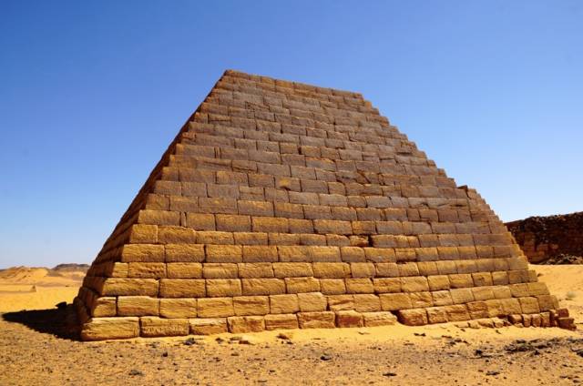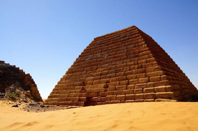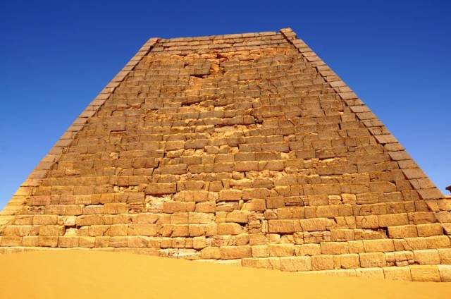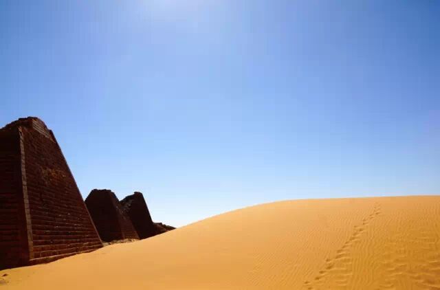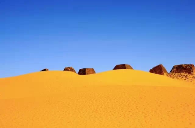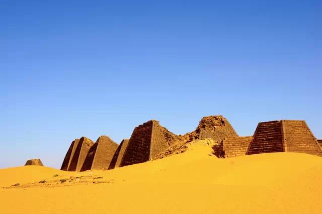 金字塔英文的原意是锥形。人们将后来发现的锥形陵墓都称做了金字塔,比如中美洲的玛雅人金字塔和这里的苏丹麦洛维王朝的金字塔。不过后来的金字塔,规模、大小都无法和埃及的金字塔,尤其是著名的法老胡夫的金字塔相比。苏丹的金字塔不过十几米高,而且大多是残破的,锥形的尖顶被岁月磨秃了,露出里面填充的碎石和沙土。看着这残破的历史遗迹,追溯那远古的历史。http://mmbiz.qpic.cn/mmbiz/V6ib4micKTZ02BSHvSV3xxGSwafnKhwib6EfHC7Lk2eJu6BPdhyK7vRUOofvgKfqc9wNbfgMlgHpumnSucT9VqmQg/640?wxfrom=5