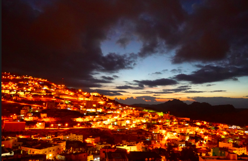 我就站在那山坡上,看太阳,慢慢,慢慢落下。看月亮,渐渐,渐渐升起。满山的房屋点起了灯光,沿途路上的灯也全部打开,一层一层围绕着整个山头,照亮着整个城镇。这一片灯火,谈不上辉煌,但定是梦幻。我有些无法相信这是我白天看到的那个简单的小镇,日月变化,似乎换了另一个世界。