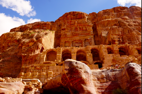 继续往前行走,会路过寺院、住宅、陵墓、洞穴等建筑物,还有一座完好的罗马竞技场,昭示着这里曾被罗马人统治过。而这一切,都是在这片玫瑰色的山体上开凿出来,颇为壮观。仔细打量,每一处似乎都有精美的设计,不失这玫瑰色的精致。