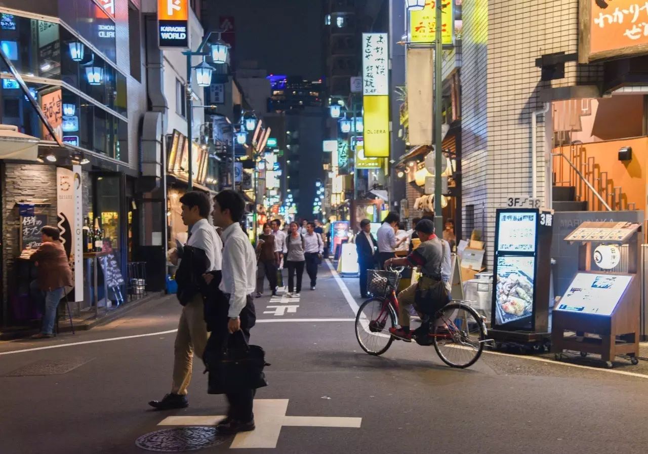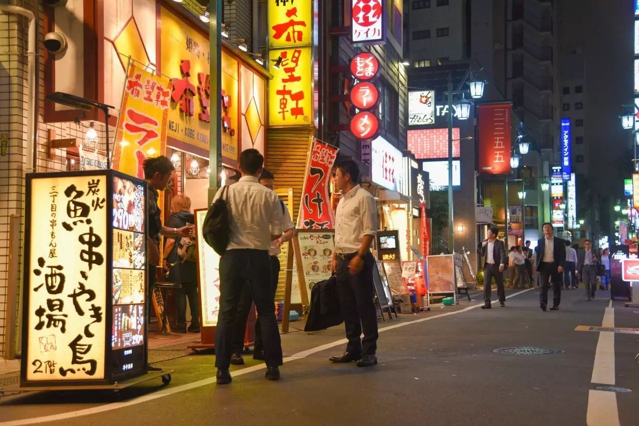 而东京人不会这样,我很难想象男士打着领带女性穿着高跟鞋挤地铁的痛苦。更奇特的是,东京人下班不常回家,都喜欢去居酒屋喝喝酒吃吃饭。这就出现了世界独特的一景,东京成为了世界上穿着西装在街头“撸串”人最多的城市。