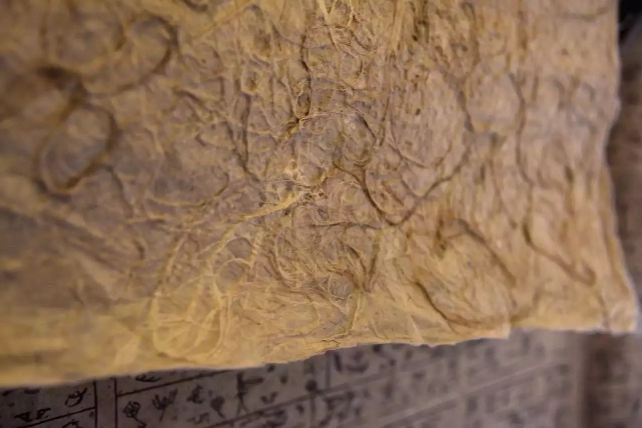 正是由于全人工操作,且费时费力,也就导致了东巴纸价格昂贵,流通不广。可它的神奇或说是生命力正是在于“千年不腐,字迹如新”,就像千百年来书写在东巴纸上的东巴经,从未因时光流逝而改变,至今颜色依旧。