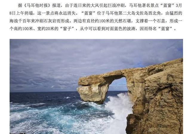 最近有一则新闻让人感觉有些酸楚,马其他的著名景点“蓝窗”坍塌,我们再也见不到这个世界之景了。