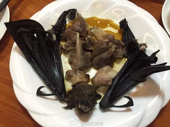 那时,北石去帕劳浮潜的时候,当地人为了款待北石的到来,给我上了一种味道极像骨肉茶的汤。记得当下觉得味道非常鲜美,一口喝了2大碗...后面他们才给我上了这只蝙蝠,有种被欺骗的感觉,当时就想哭出来。但是味道真心不错!而且,蝙蝠还被作为药引,可以治疗目疾。