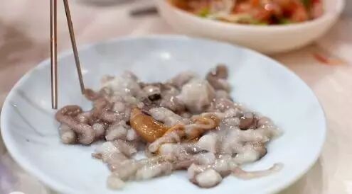 这是韩国最受热捧的食物之一!是用活章鱼的触须用刀快速切成小块,沾上香油和芝麻,放入嘴中,此时会发现它仍在喉咙里滑动,因为触须还有很强的活力。但,注意!因为一定要活着吞下去,据说每年都会有人因为章鱼爪的吸盘黏着到呼吸道或者食道上而窒息死亡