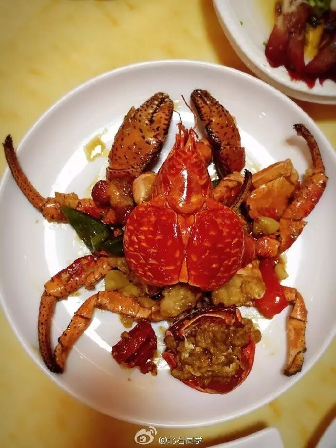 做出来就是这样啦!是不是有一种像螃蟹的既视感。因为经常吸食椰汁为生,所以椰子蟹的肉味非常的鲜美。北石透露个小秘密给你们,如果同场有其他吃货跟你们抢吃的,你们就先针对它的腹部疯狂夹~因为这里的脂肪最多,也是最营养丰富的。在帕劳也可以吃到哦~