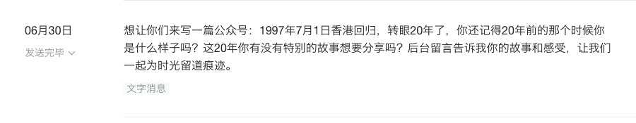“关于香港回归这20周年里,你们的故事”