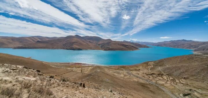 羊卓雍措面积675平方千米,湖面海拔4441米,是西藏的三大圣湖之一,传说是一位仙女下凡所变,被誉为世界上最美丽的湖。