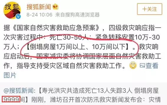 9999这个数字,也许真只是巧合,但如此精确又敏感,不免让人产生联系,因为如果是1万间,灾情定性就完全不一样了;当然,刀锋还是相信官方,毕竟如此细致,说明工作严谨到位了。