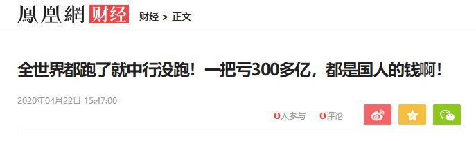 市场上传的消息是:中国银行一把亏了客户300多亿。