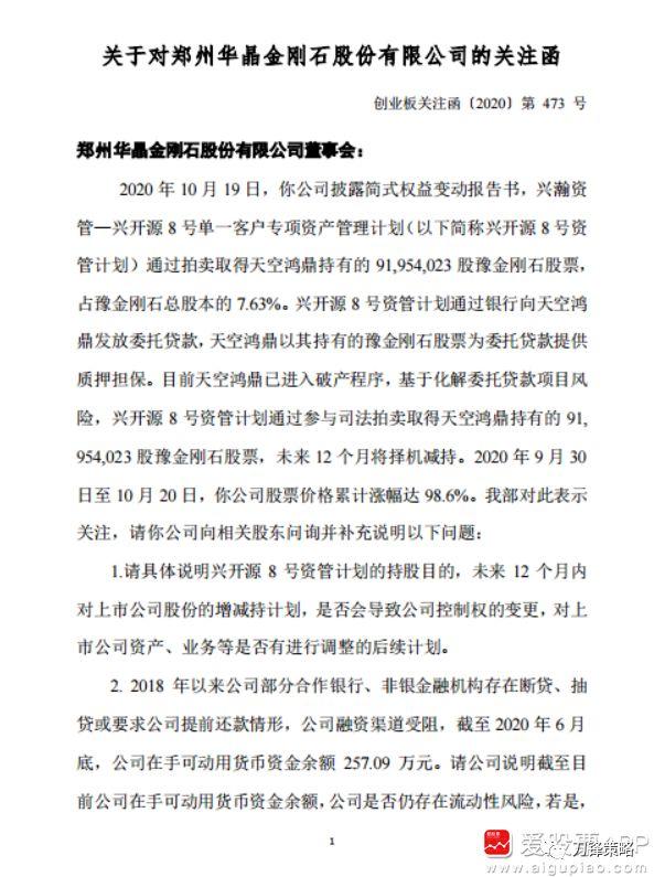 豫金刚石收关注函,要求公司说明生产经营、主营业务等基本面是否发生重大变化,公司股价变化与基本面是否匹配。说明公司近三个月接受媒体采访、机构调研、自媒体宣传,以及投资者关系活动情况,是否存在违反信息披露公平性原则或误导投资者的情形。