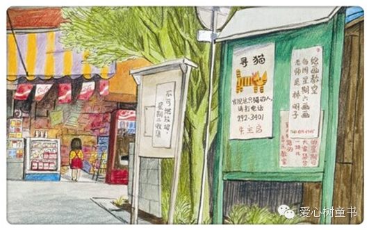 这里有一个寻猫的告示,其实这只猫在美依去买东西的途中出现过,但是文字中没有。孩子看图会非常仔细,他可能看到过那只猫,看到之后也没有多想,但到最后发现这幅图中居然在找这只猫,谁找到了?孩子找到了,所以他会很惊喜。