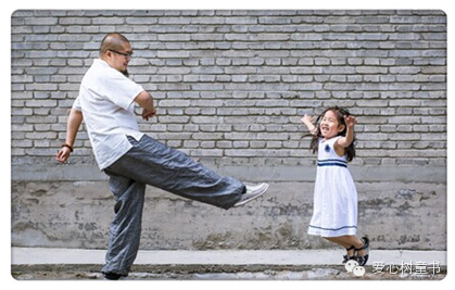 像这张照片,当时我在调动女儿跟她爸爸的关系。因为这个女儿平时很少跟她爸爸去玩,她不喜欢她爸爸的工作和平时的状态,所以我想先调动他们的情绪,让爸爸做一些动作跟她互动,那个爸爸非常认真地做了,但是我没有想到他做了顺拐的踢正步的动作,刚开始我还没有发现,因为当时他做这个动作的时候太自然了。后来我回去翻看,再慢慢回忆,我觉得他是在很认真地做这件事,想很好地完成我交给他的这个任务,以至于他的所有思维和注意力,都集中在他想做的这件事,而忽略了肢体的操控,所以他的这个顺拐出现得很合理。林明子《第一次上街买东西》里出现的顺拐也是一样,小主人公美依第一次出去买东西的时候也担负了很大的心理压力,但是她又要勇敢地面对外面的未知世界,这时候她做出了这样的动作是非常合理的,而且能够让这张画面更生动。