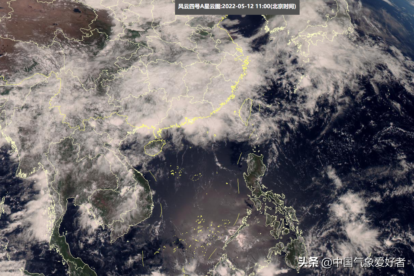 5月12日上午,从高清可见光卫星云图上看,今天浓厚的季风云团继续在华南沿海盘旋,这说明广东多地凶猛的季风暴雨还在继续。