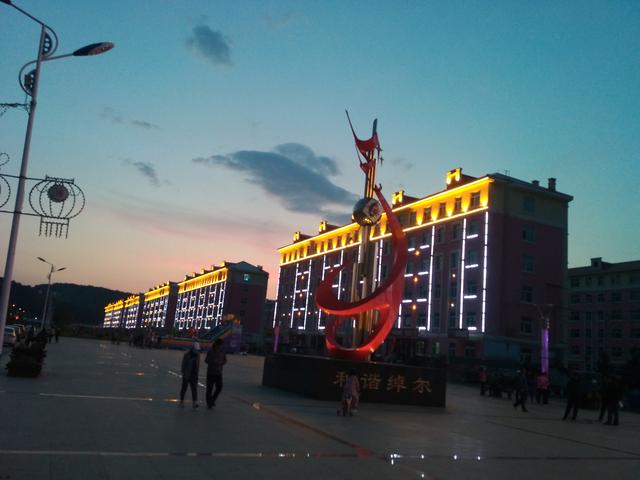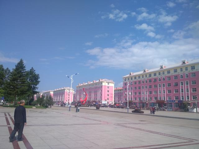 我一个人背着包,走出车站就是镇区,很宁静的一个小镇,一条主街,两旁是整齐的4到5层建筑,花花绿绿的,风格迥异,带有浓郁的大东北特色,宽敞的绰尔广场,四周是清脆浓密的兴安岭森林,街上没有什么人,好一个原始自然的林区小镇。