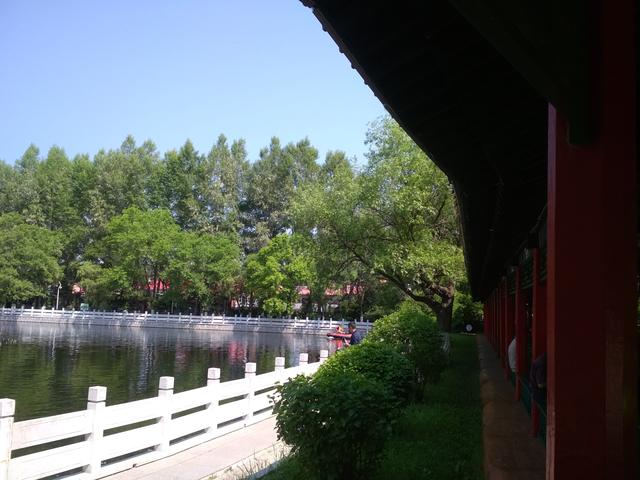 玉溪公园内的龙池,水光潋滟,清澈如镜,时间都好像静止了,上面亭台廊榭,汉白玉的栏杆雕刻,真如同走进了园林一般,颇有一番北国江南的韵味,据说晚上这里会有喷泉的表演,水花会从池中央的龙嘴里喷出,流光溢彩,非常华丽多彩!