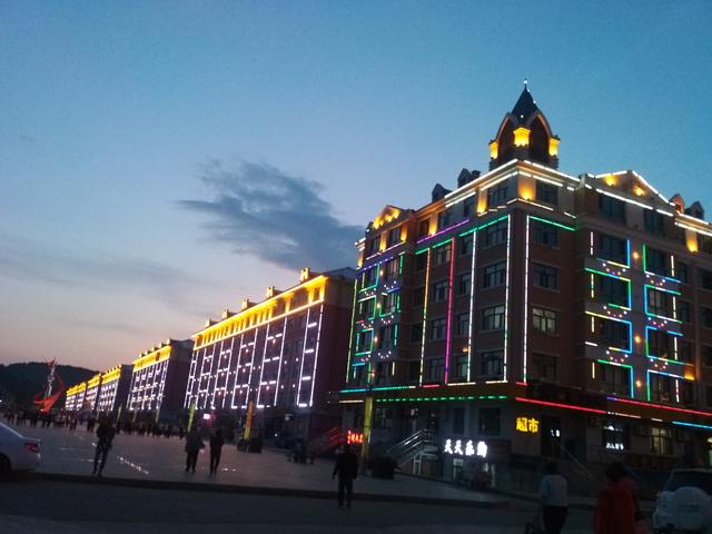 塔尔气的夜晚,清冷宁静,沿街的建筑都亮起了灯光,流光溢彩,如梦如幻。