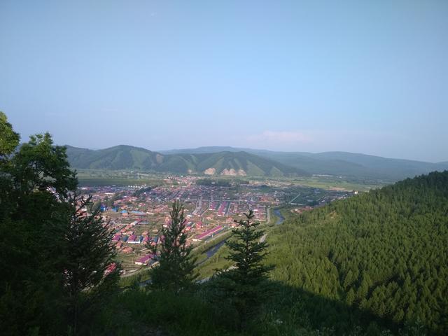 终于登上五亭山顶了,从这里可以俯瞰整个塔尔气镇,安详美丽的小镇,静静地躺在大兴安岭怀抱里,不愧是林区明珠。