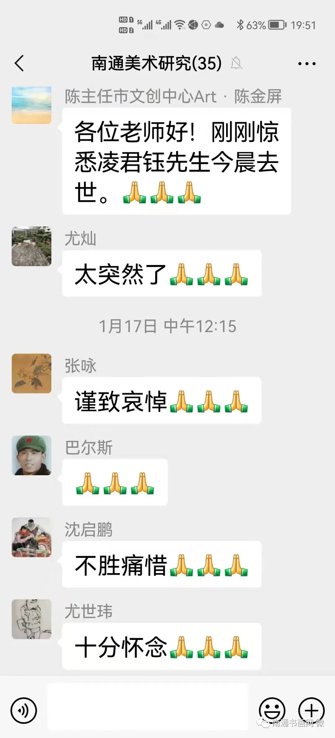 2022年1月17日午间,南通文化艺术创作研究中心陈金屏主任发出的一则:“凌君钰先生于是日凌晨逝世”的消息,立刻震惊了中国美术南通现象课题研究的微信群。